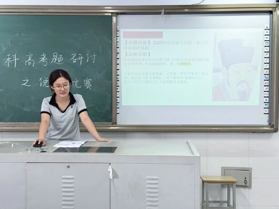 春风浩荡催桃李,教研深耕正当时。为深耕高考语文命题规律,提升教师解题析题能力,搭建学科教研交流平台,提升教师专业素养与教学能力,提高教师解题、析题、命题的能力,促进学科组教研水平提升,切实推进我校“三年一体化”教培研改良行动,我校高三语文学科组于2025年10月2日上午举行语文高考试题“说题”大赛。