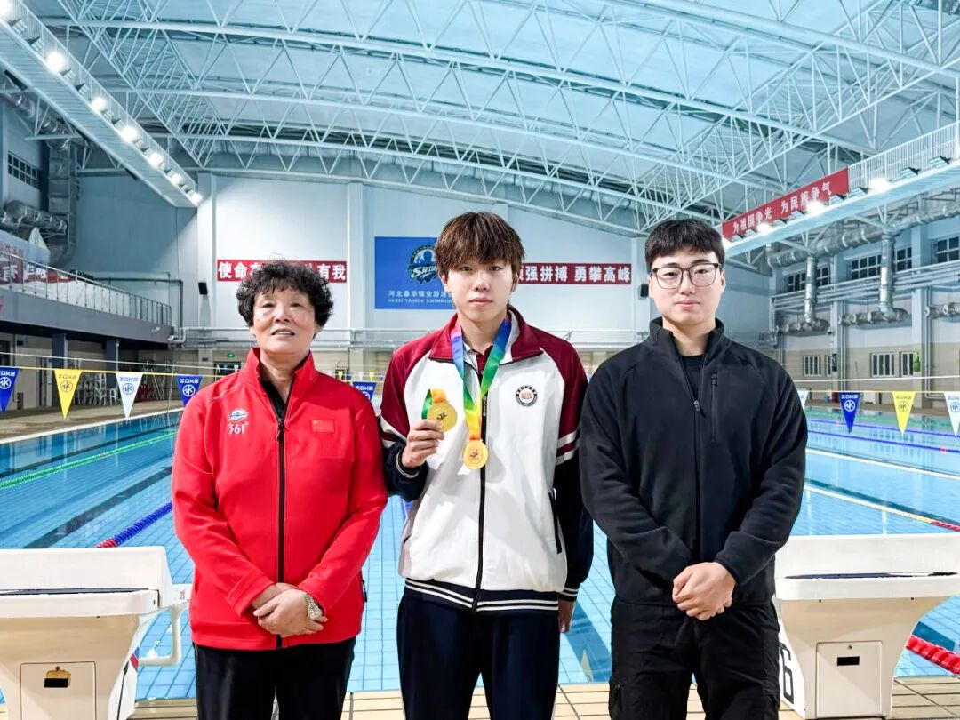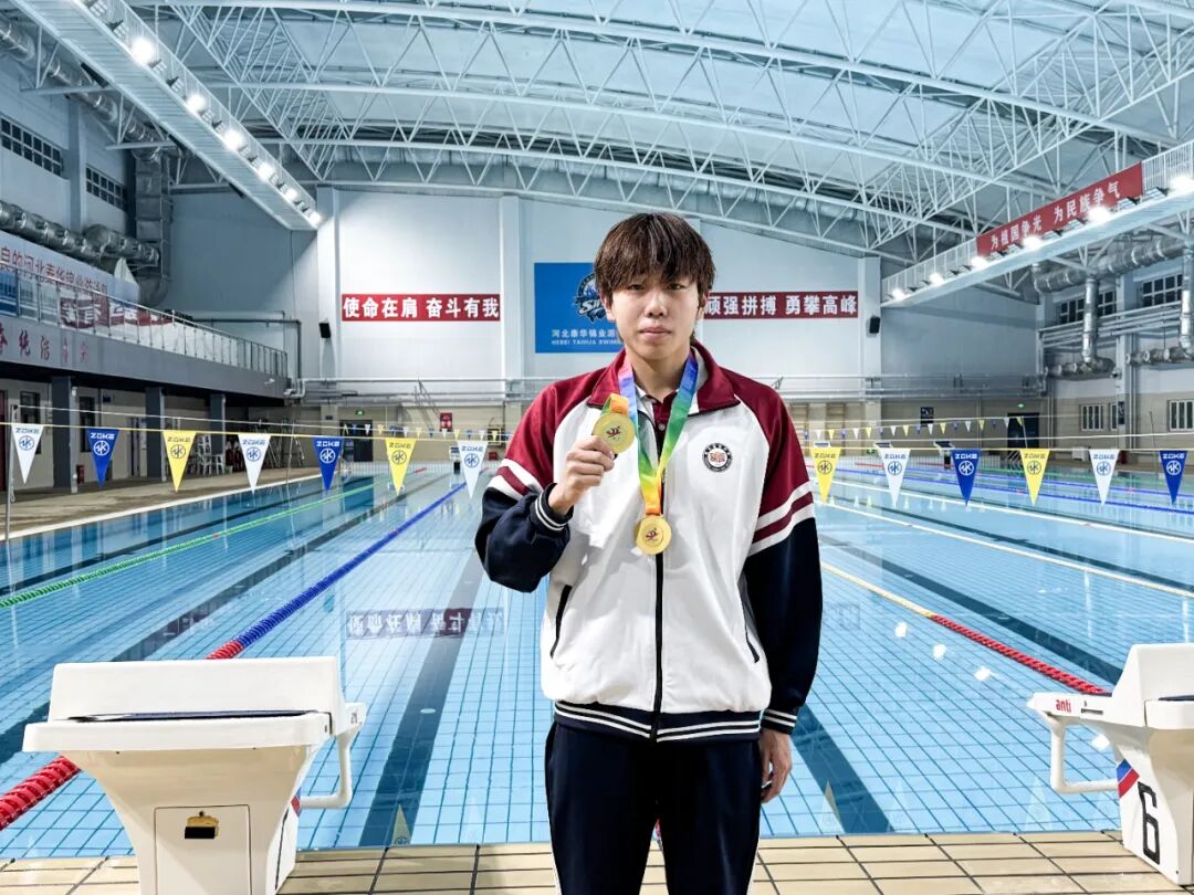 双金荣光,绝非偶然。它源于张玮烁同学朝暮不辍的坚持:清晨泳池边的热身身影,夜晚训练馆里的划水声浪,都在诉说着他与泳池的日夜相伴。