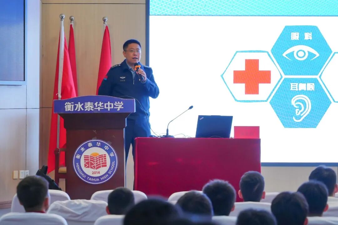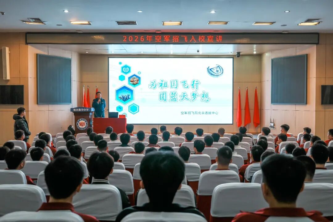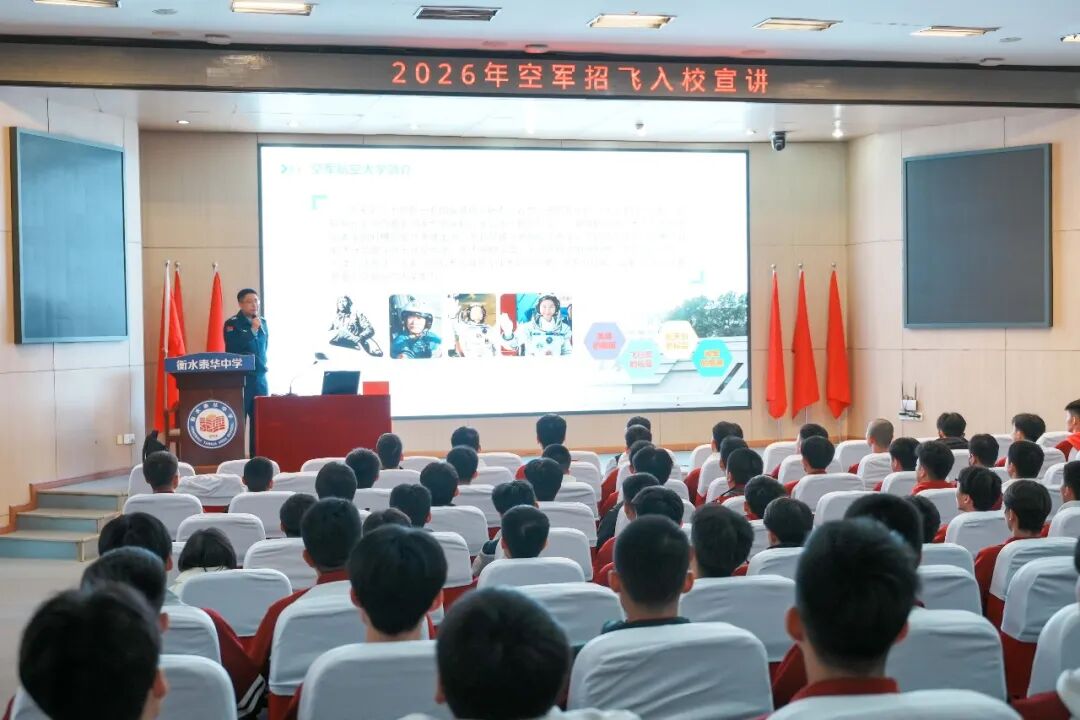 2025年11月4日,空军招飞局北京选拔中心走进衡水泰华中学,为心怀翱翔之志的同学们带来了一场精彩纷呈的招飞宣讲会。此次宣讲不仅详细解读了空军招飞的政策与条件,更以榜样的力量,激励着无数泰华学子立报国之志、筑蓝天梦想。我校校长巩建英与高三年级学生共同到会聆听宣讲。
