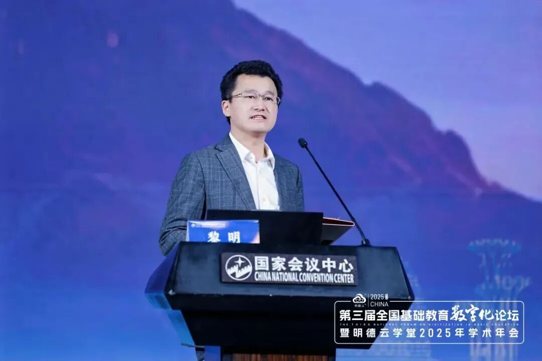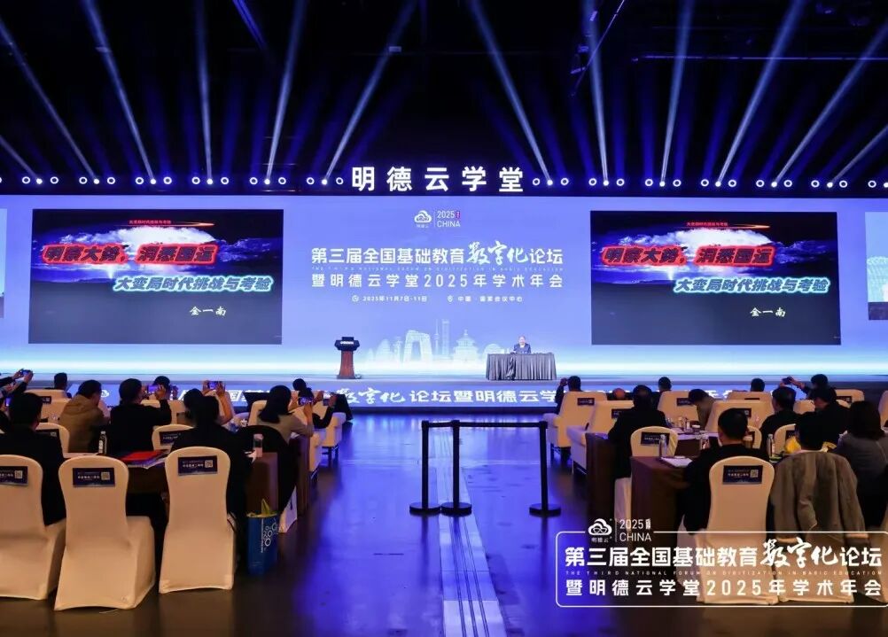 2025年11月8日,第三届全国基础教育数字化论坛暨明德云学堂2025年学术年会在北京国家会议中心隆重开幕。本次大会以 “人工智能时代,中小学如何应对” 为主题,汇聚了来自全国近5000名教育工作者、专家学者及行业领军人物。我校校长巩建英应邀出席本次盛会,与各界教育同仁共探智能时代基础教育的发展路径。