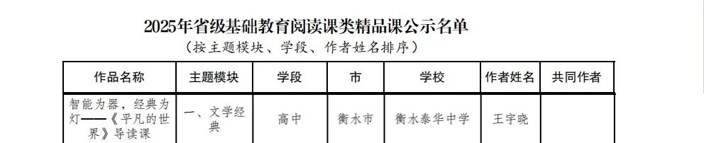 日前,河北省教育厅正式公示了2025年“基础教育精品课”遴选结果。经过激烈角逐与专家严格评审,我校三位教师凭借扎实的教学功底和创新的课程设计脱颖而出,其主讲课程被评为省级精品课!