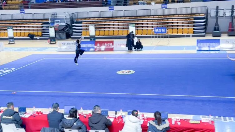 比赛现场图片:薛振斌、李一烁、赵梦轩三人对拳,赵梦轩劈挂拳,段雅琪鹰爪拳,段雅琪双鞭。