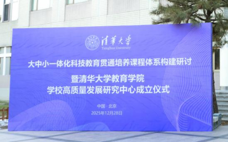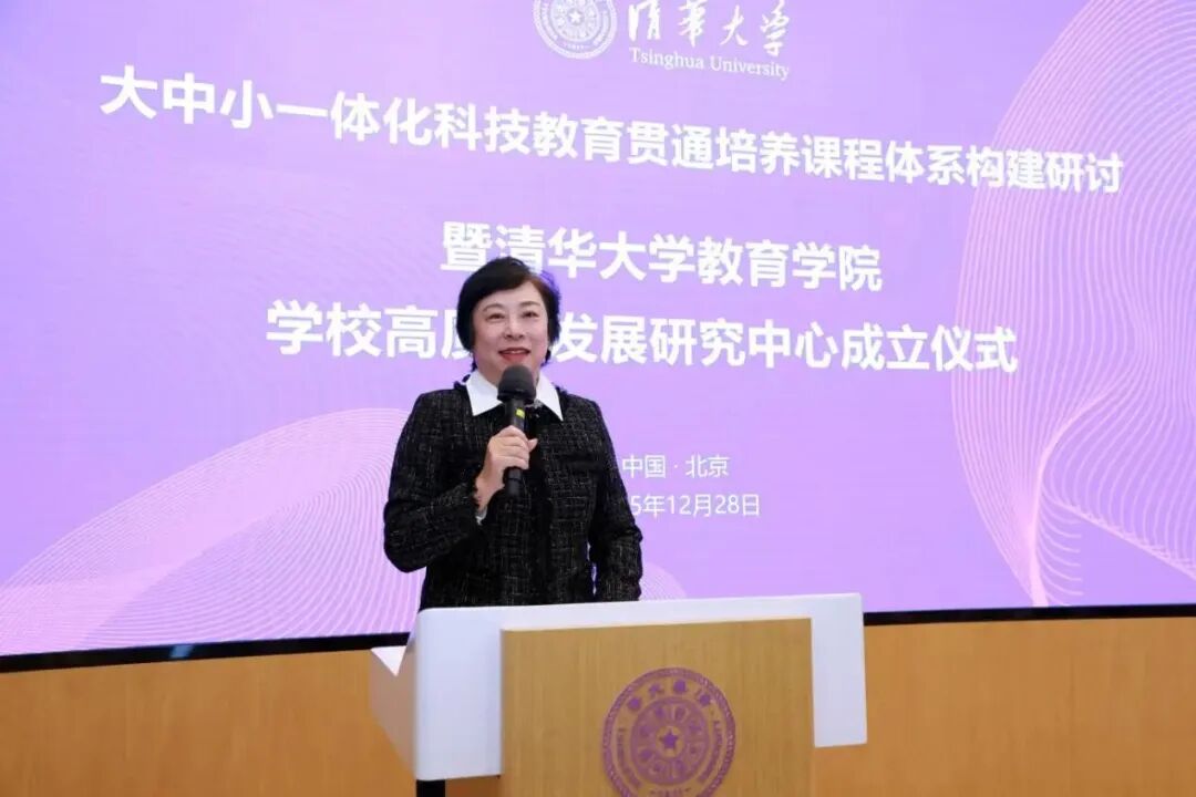 2025年12月28日,清华大学教育学院主办的“大中小一体化科技教育贯通培养课程体系构建”研讨会暨清华大学教育学院学校高质量发展研究中心成立仪式在清华园隆重举行。教育部相关领导、全国教育科研单位代表及百余所中小学负责人齐聚一堂,共商科技教育贯通培养大计。我校校长巩建英作为我省代表受邀参会,与国内教育界同仁深入交流,共同探讨拔尖创新人才培养的系统化路径。