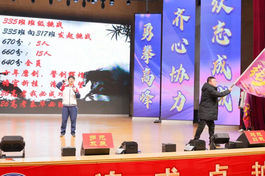 大会现场,誓言铿锵,豪情满怀。高三各班级依次登台,以青春的名义发起挑战,用坚定的声音许下承诺。每一句誓言都凝聚着学子们的执着与决心,每一个眼神都饱含着对未来的憧憬与向往。这股团结奋进、勇往直前的力量,在会场中激荡回响,成为激励全体学子砥砺前行的精神纽带。