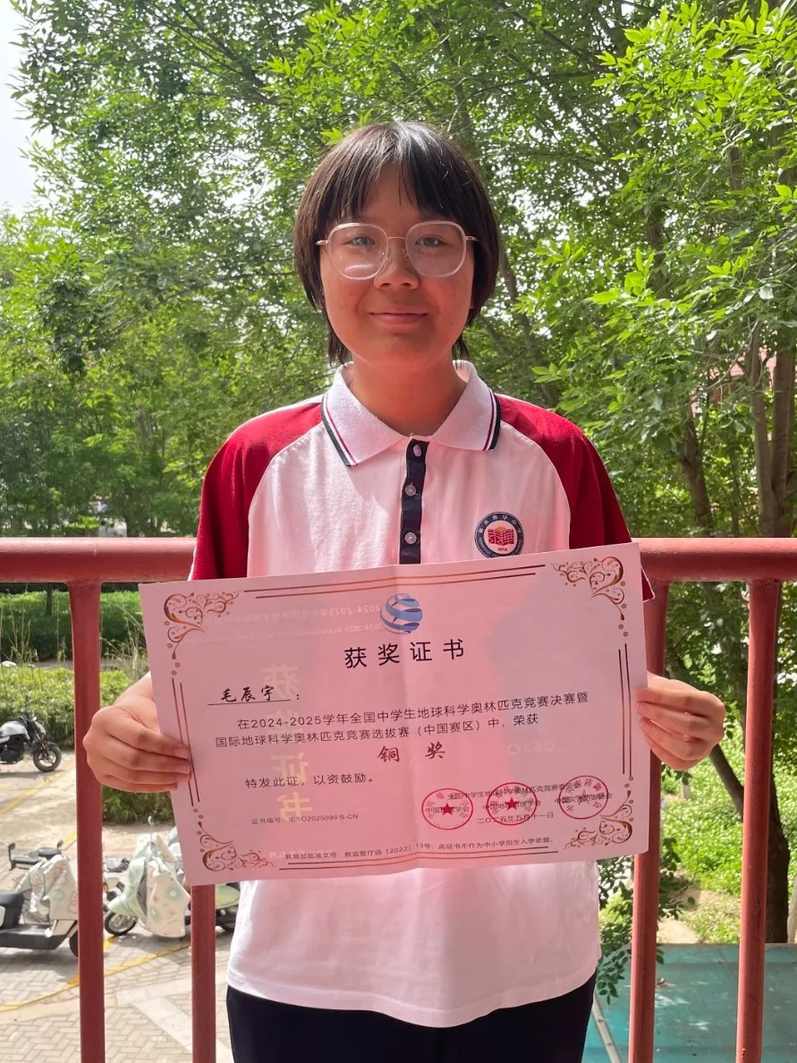 毛辰宇、胡子奥全国中学生地球科学奥林匹克竞赛斩获铜牌