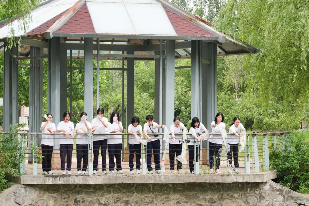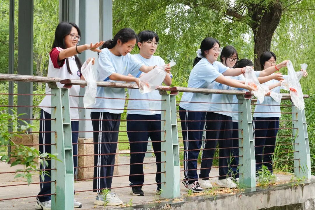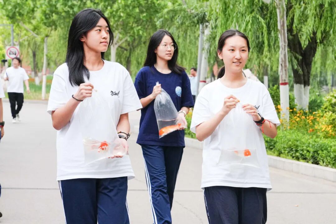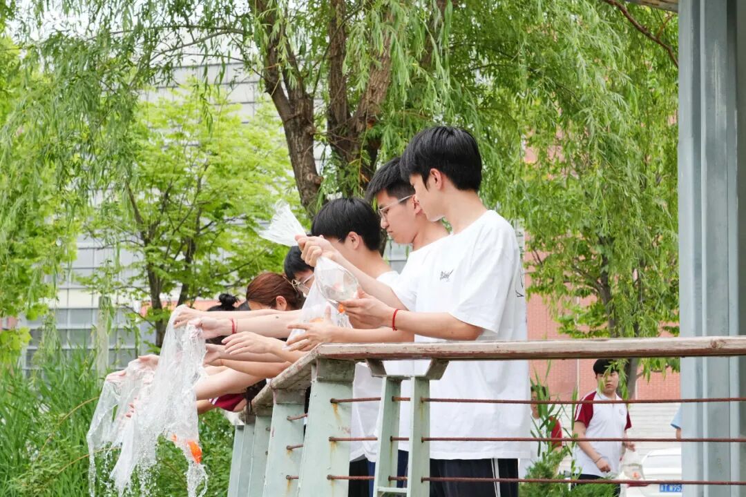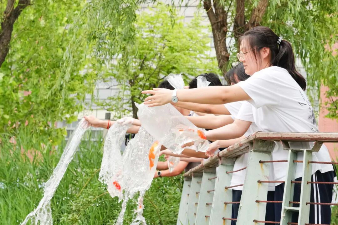今日我送锦鲤赴碧波,明日碧波托我上青云。同学们手捧锦鲤前往投放地点,心中满是期待与激动。