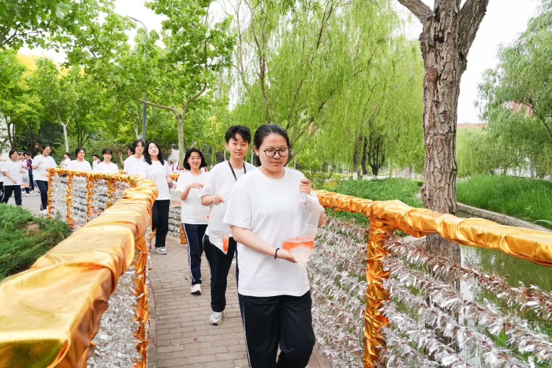 每一条灵动的锦鲤都寓意着“鲤跃龙门”,象征着同学们在高考中能够突破自我,取得优异成绩,实现自己的理想,开启人生崭新篇章;每一条灵动的锦鲤都承载着学校、老师和家长们满满的最真挚的祝愿,愿它们带着勇气与好运,为即将奔赴考场的同学们驱散紧张,点亮信心。