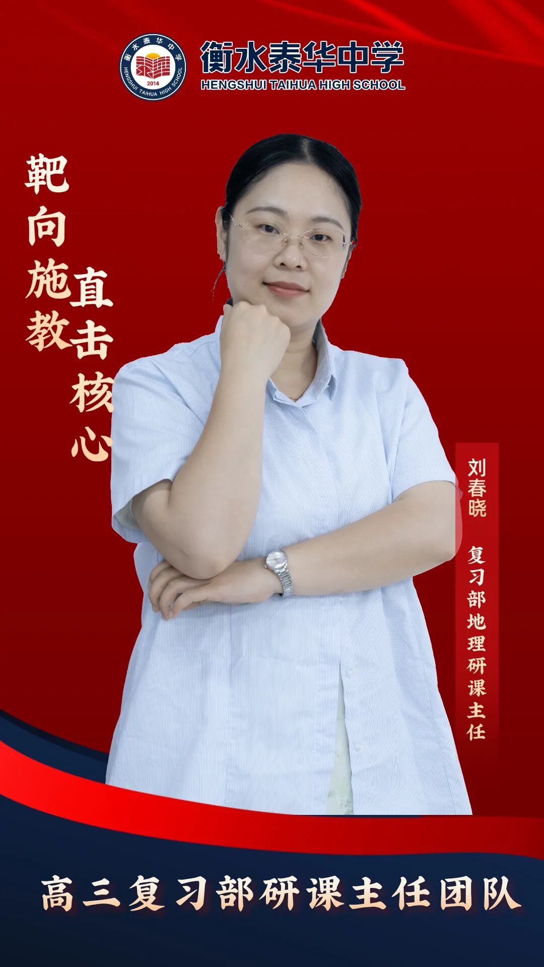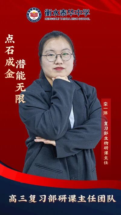 现任衡水泰华中学复习部生物研课主任。