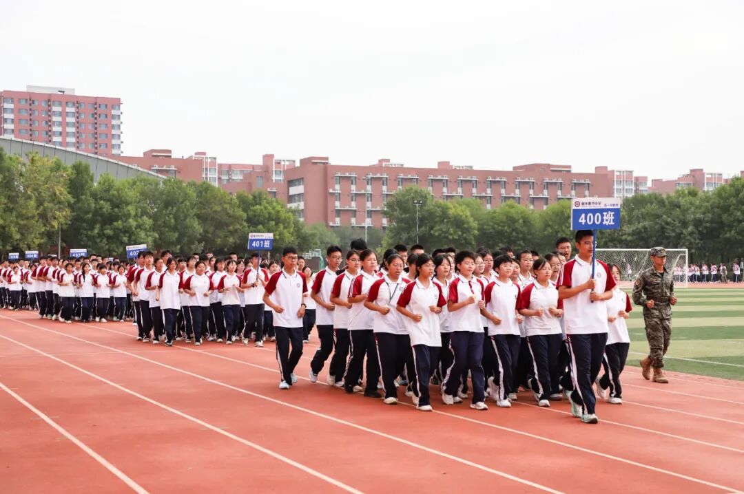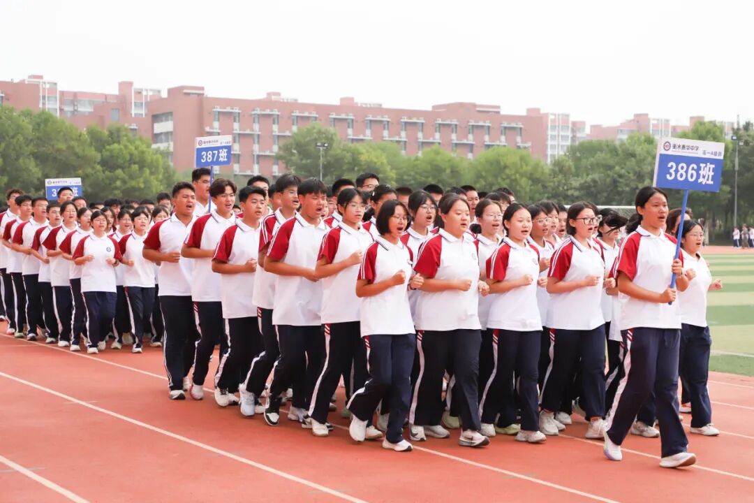 紧接着是跑操展示。各方阵步伐统一、队列严整、口号嘹亮。整齐划一的动作,饱满昂扬的精神状态,充分展现了泰华新一届学子在军训中锤炼出的过硬作风和良好风貌。