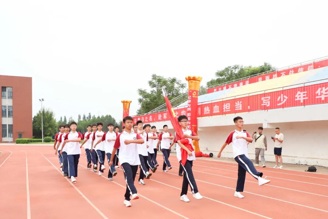 武警衡水支队副参谋长宋占路,我校党总支书记、副校长王伟,副校长孙永峰、张宪辉、李桂省、郭庆炉、王丽昌,校长助理、高一年级A部主任李瑞东,校长助理、教务处主任安国彩,高一年级B部主任邱会欣等领导及全体高一师生共同见证这一庄严时刻。