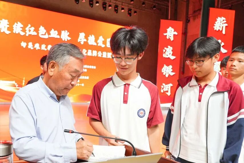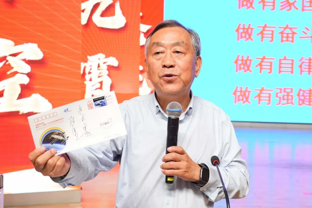 孙保卫少将还为踊跃提问的同学准备了特殊礼物——中国航天主题首日封。他亲笔签名并题写寄语,方寸之间,承载的是航天历史的辉煌,传递的是对青少年未来的殷切期望。讲座结束后,同学们纷纷上前请孙将军签名留念,现场气氛热烈、温馨而感人。