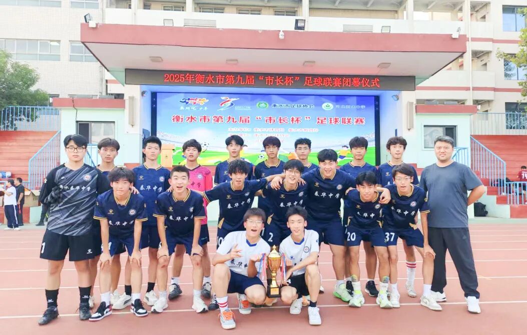 2025年8月25日,衡水市第九届“市长杯”校园足球联赛在衡水中学体育场拉开帷幕,本届联赛由市体育局、市教育局联合主办,市足球协会协办。来自全市各县市区小学、初中及高中的800余名运动员及教练员齐聚绿茵场。在这场备受瞩目的青少年足球盛会中,衡水泰华中学足球队队员们以顽强的拼搏精神和卓越的竞技水平,一路过关斩将,最终夺得高中组亚军,创造了学校在该项赛事中的历史最佳战绩。