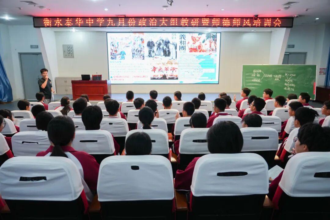 为进一步提升政治学科教学质量,加强师德师风建设,近日,衡水泰华中学政治中心教研室成功举办了一场高质量的政治学科公开课教学研讨活动,并同步开展了师德师风专题培训。本次活动由贾寒瑞老师和孙小菊老师分别进行课堂教学展示,多位教师参与听课、评课,现场氛围热烈,成效显著。