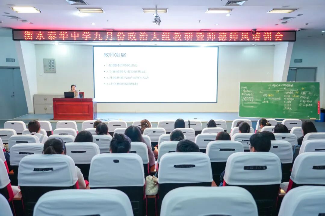 活动最后,张世宁主任为全体政治教师开展师德师风培训,传达学校相关会议精神,强调全体教师要严守会议制度,讲好泰华故事,传播泰华声音,以实际行动为学校发展贡献力量。张主任的讲话深入浅出、语重心长,进一步增强了教师们的责任感和使命感。
