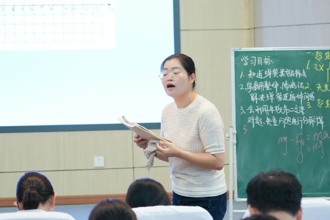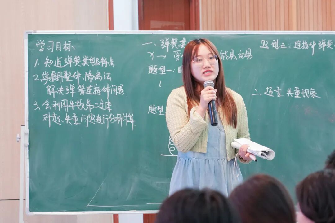本次活动由复习部马玉蕾主任与骨干教师张小妮老师同课异构,两位老师同时就“牛顿第二定律中的弹簧类问题和超失重现象”进行课堂展示。全体物理教师参与,督导团尹建尊老师莅临指导,共同探讨不同学情下的高考复习提质增效的新路径。