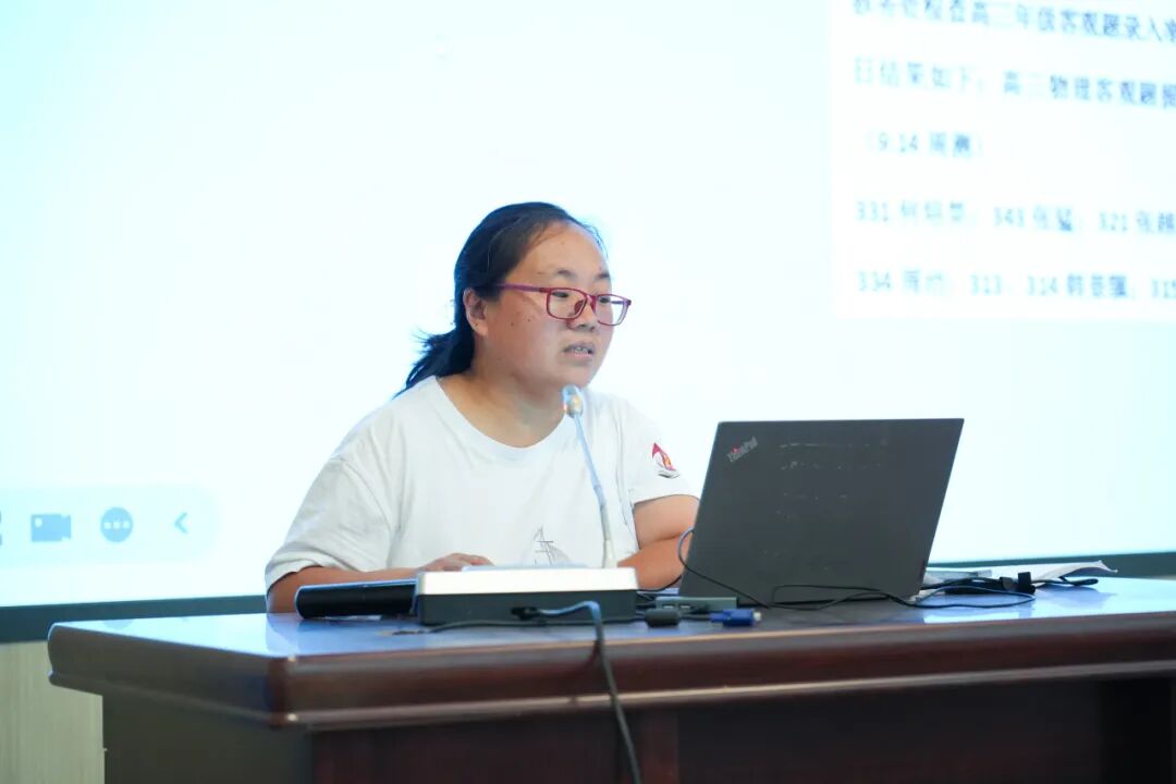 物理中心教研室王娜主任就外出学习给大家做了分享,并对教研、教案、课堂和自习等常规问题督促且细化要求。关于学科组建设,王娜主任提出了每学年每人上一节公开课,上过一年高三的每年发表一篇论文,研课主任每学期发表一篇论文,物理组名师工作室成员每年完成一个课题的要求,志在努力把物理组打造成一支有信仰的学科组!