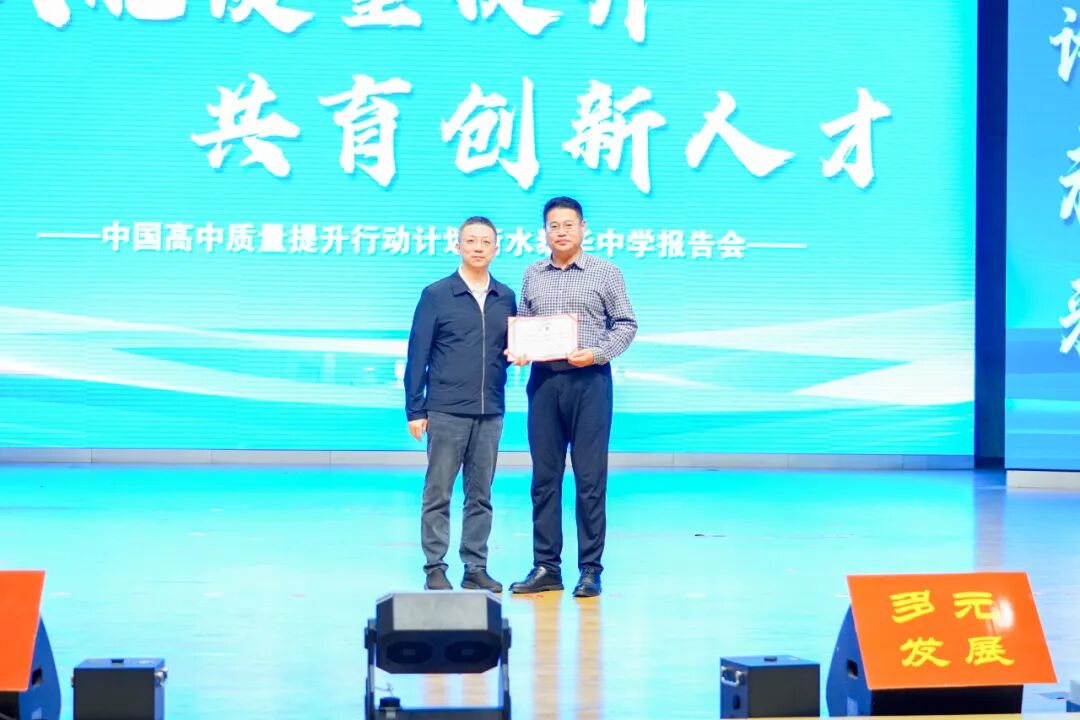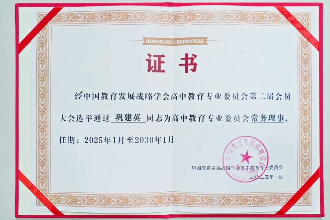 报告会伊始,举行隆重的证书颁发仪式。蒋承教授代表主办方为巩建英校长颁发“中国教育发展战略学会高中教育专业委员会常务理事”荣誉证书。这份证书不仅是对巩校长个人教育成就的肯定,更是对泰华中学办学实践的高度认可,标志着我校已走在国家高中教育发展战略的前沿,从实践高地迈向理论前沿与政策对话的中心舞台。