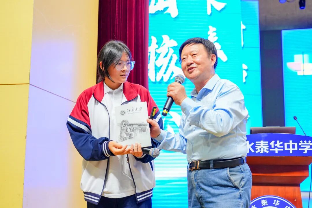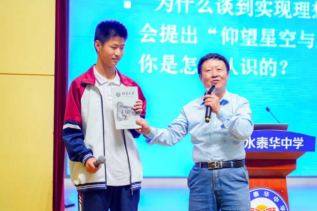 李亚平教授向泰华学子赠送了光明日报出版社《我这样走进一流大学》及《父母与孩子心灵的对话》等书籍百余册,由338班姜雨彤、400班康文博同学作为学生代表接受赠书。这些书籍是知识的馈赠,更是对同学们全面成长、身心俱健的深切关爱。