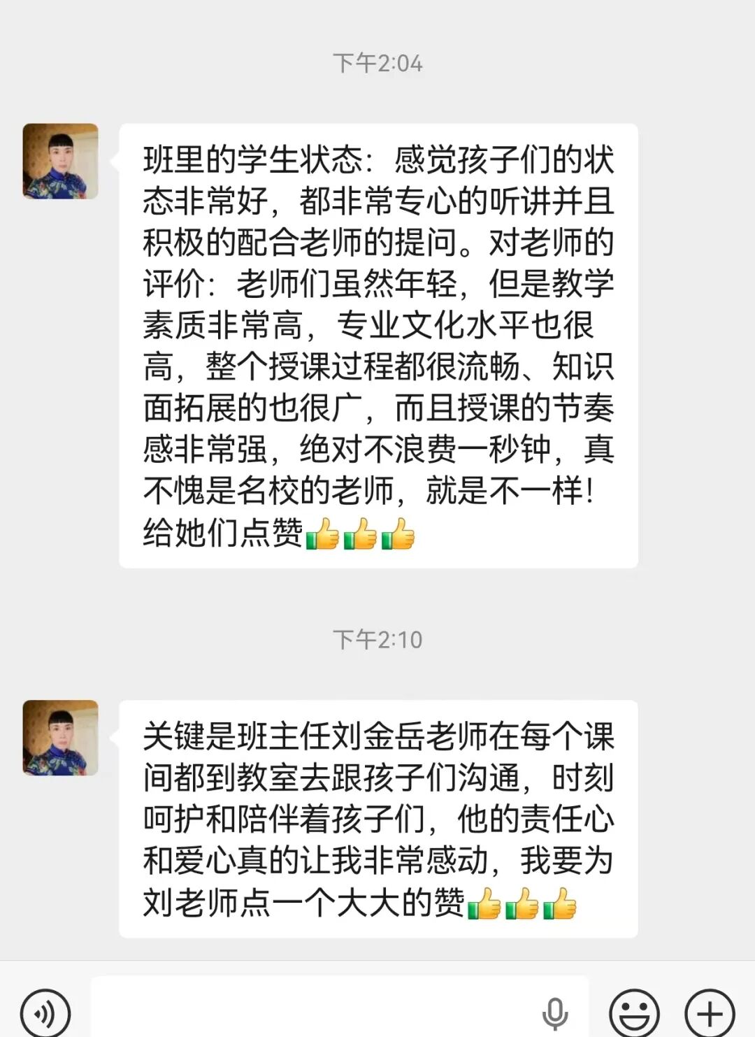 大家普遍提到,课堂上老师既对学生的学习状态严格要求,确保知识吸收效果,又能关注到学生的情绪变化,用耐心解答疑问,用爱心鼓励进步,让课堂既有“深度”更有“温度”。