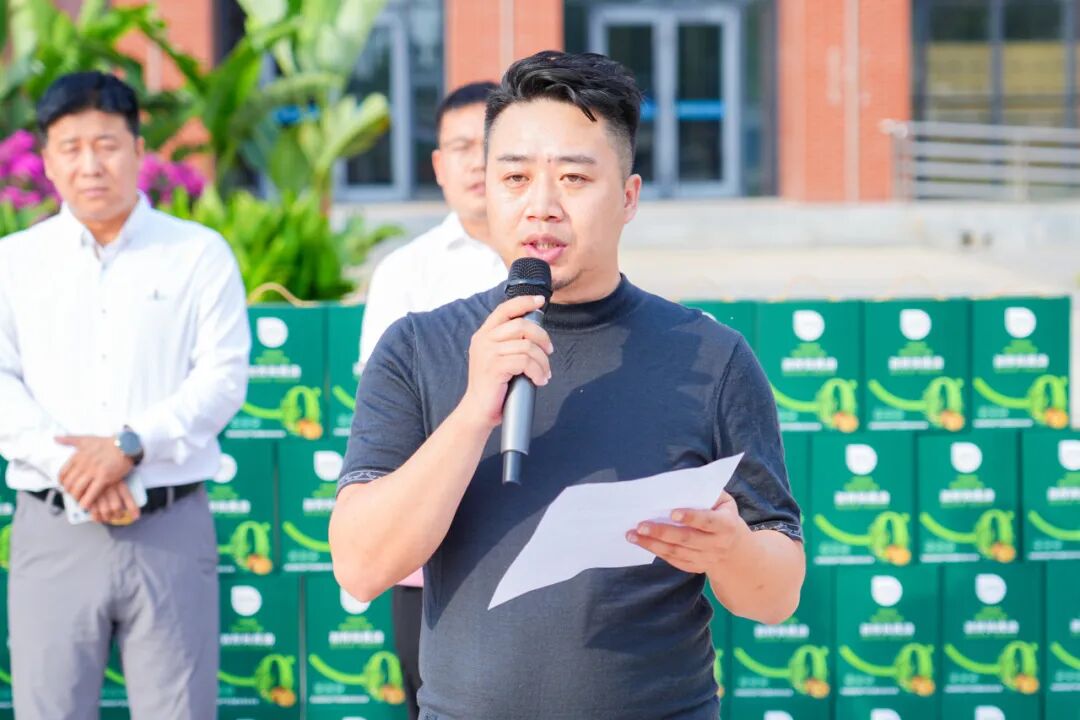 在隆重的捐赠环节,各爱心企业向学校捐赠了丰厚物资。衡水文翰墨茂教育咨询有限公司代表、衡水湄窖翰墨商贸有限公司董事长柯昌玲董事长代表公司捐赠 700盒月饼;衡水嘉润食品有限公司经理柴伟经理代表公司捐赠 100箱桃香醋;廊坊利珠粮油食品有限公司经理樊志全经理代表公司捐赠 100箱核桃油。这些沉甸甸的物资,承载的是社会各界对教育事业的支持与期望。