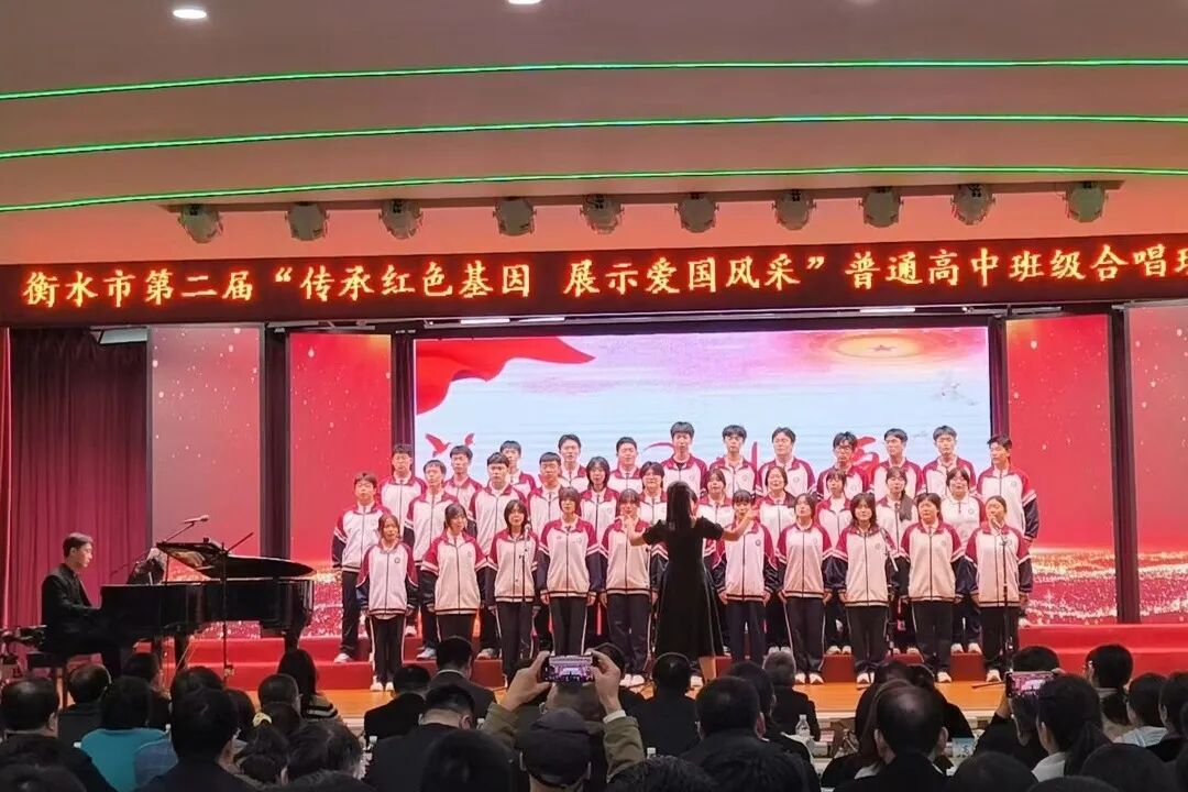 歌声袅袅传深情,旋律悠悠颂华章。近日,衡水市教育局在全市开展了以“传承红色基因,展示爱国风采”为主题的衡水市第二届普通高中班级合唱比赛,我校在接到通知后,按照文件要求积极选拔优秀班级参与其中。