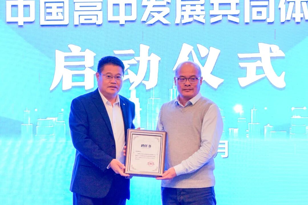 巩建英校长代表中国高中发展共同体聘任朱海峰老师为全国名校名师领航计划暨拔尖人才培养协作共同体名校名师领航专家。