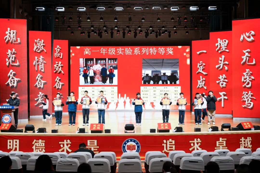 大会开篇以表彰环节点燃全场热情,旨在树立榜样力量,激励全体学子奋勇争先。活动中,对核心素养检测中荣获特等、一等、二等奖的学子进行表彰。