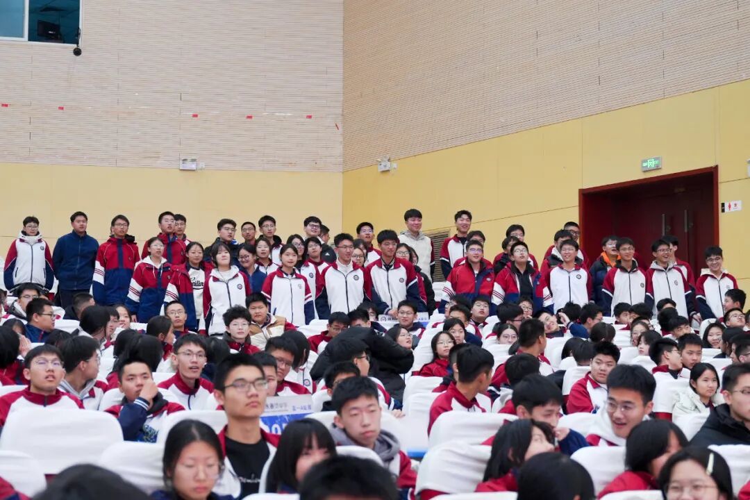 大会由高一年级A部德育主任贾寒瑞主持,校长助理、高一年级A部主任李瑞东,高一年级B部主任邱会欣、王浩主任全程莅临指导,与全体高一学子共同见证荣耀时刻、共话奋进蓝图,为青春逐梦之路注入强劲动力。