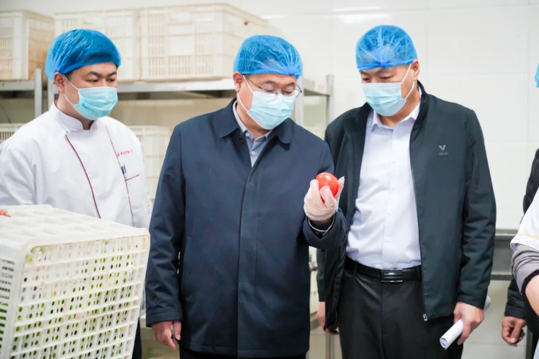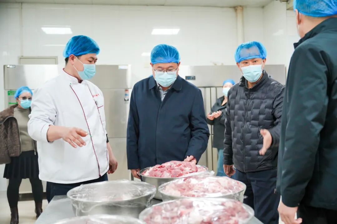 巩建英校长一行首先深入食堂各核心功能区域,开展全链条实地督导。从粗加工间、肉加工间的食材处理规范,到烹饪区的火候把控与操作细节;从售饭间的餐品保温与服务细节,到取样环节的规范留存;从消毒房的设备运行与消杀流程,到主食库房、副食库房的分类存储与台账管理,再到快检室的检测流程与能力建设,每一处关键环节都细致查看、逐一指导,明确细化要求,压实管理责任。