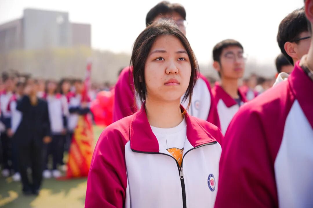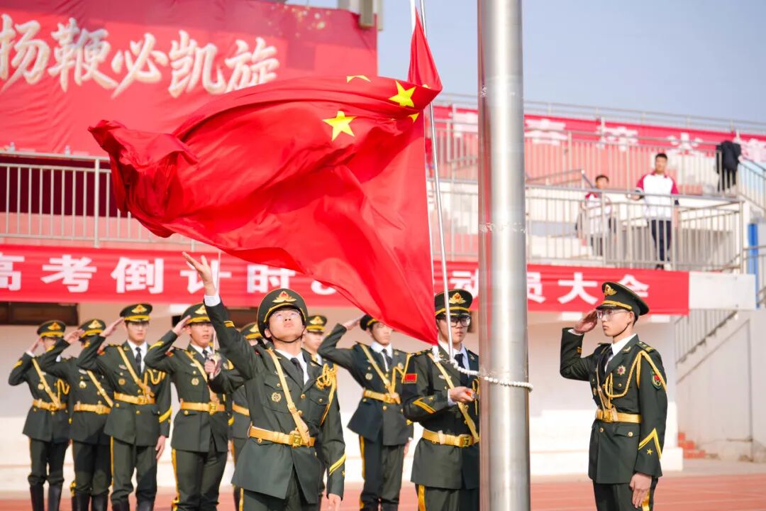 伴随着激昂的音乐,国旗班迈着铿锵的步伐护卫国旗入场。全场肃立,国歌嘹亮,五星红旗冉冉升起。那一抹鲜艳的红,映照着每一个泰华学子眼中的光——那是信仰,是担当,是80天后必将凯旋的底气!