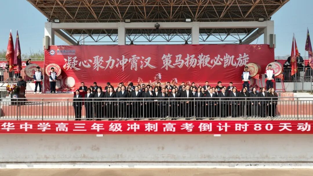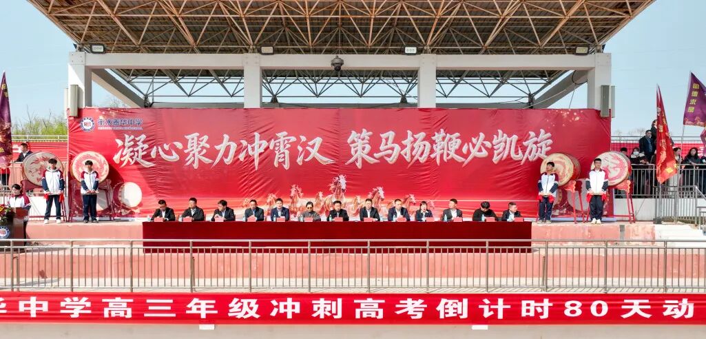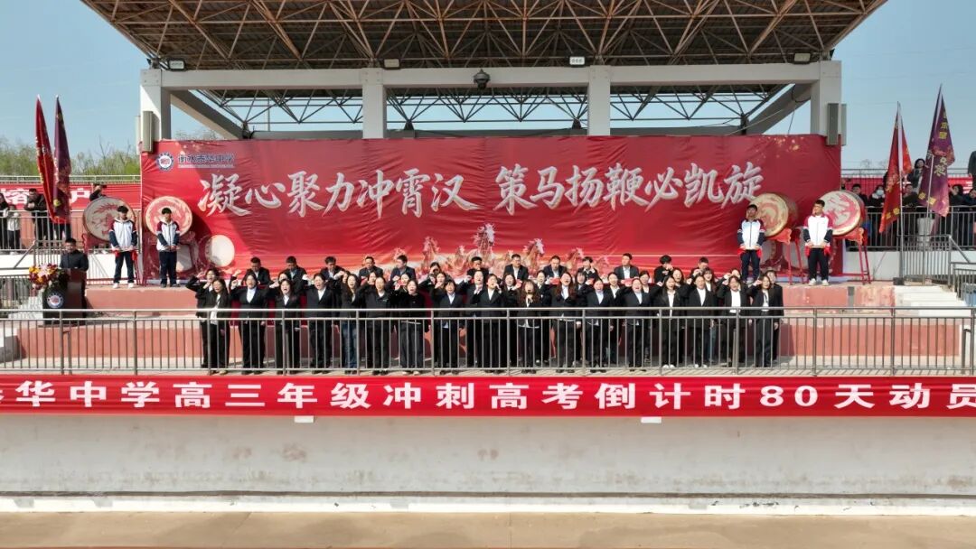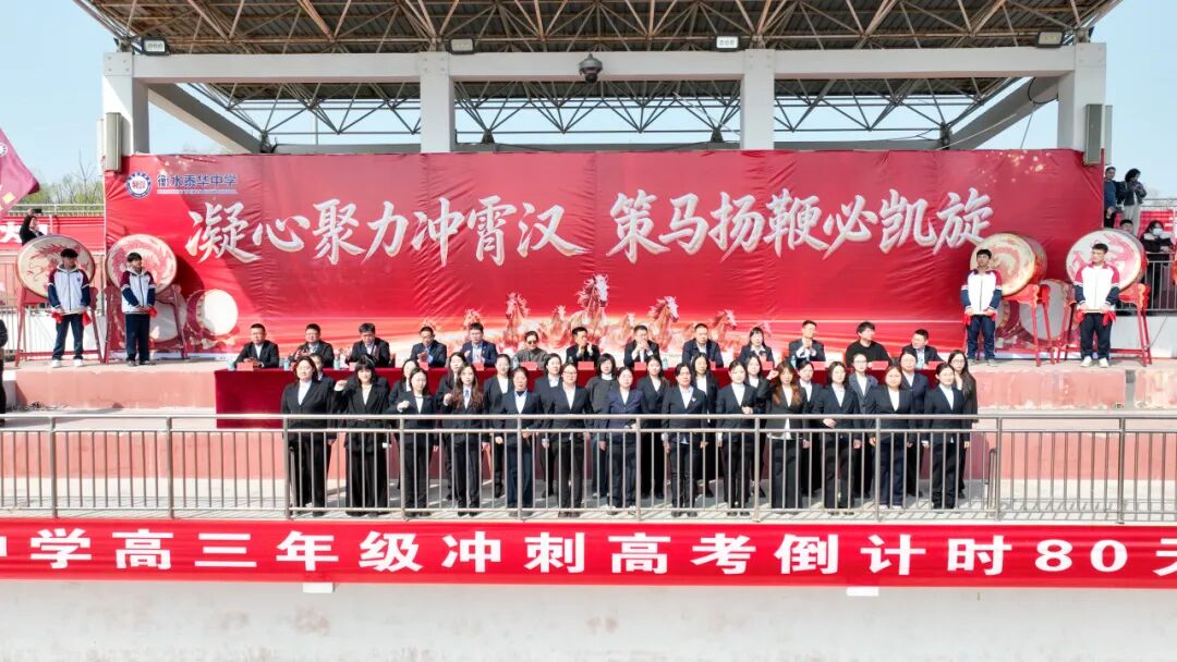 上午十时,衡水泰华中学风雨操场早已人头攒动。主席台上,活动主题——“凝心聚力冲霄汉,策马扬鞭必凯旋”,十四个大字在阳光下熠熠生辉。衡水泰华集团领导、衡水泰华中学校领导班子与2026届全体毕业班师生齐聚操场,举行高考倒计时80天动员大会,共同见证这一热血时刻!