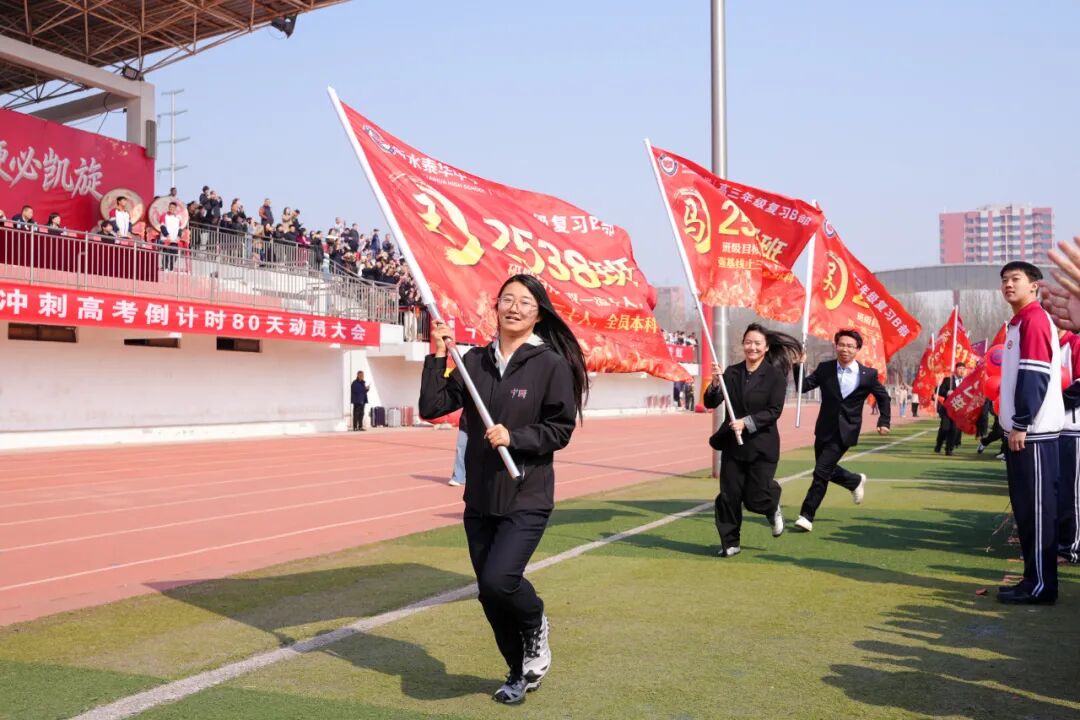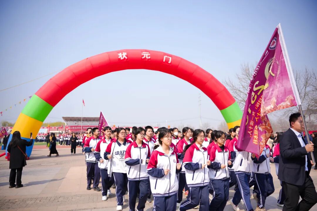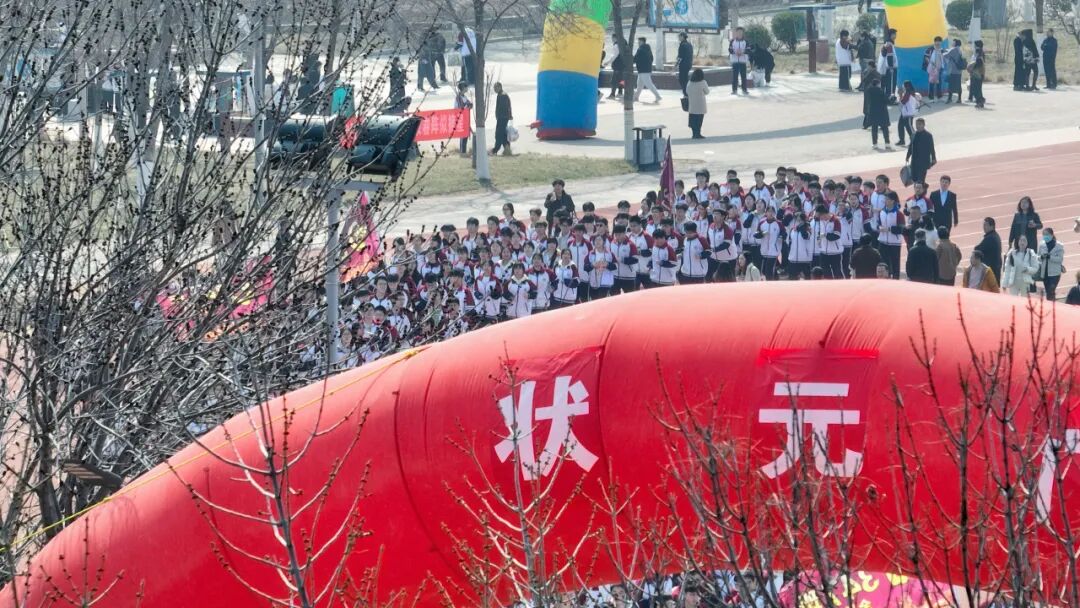 复习A部、复习B部、高三A部、高三B部,四个方阵依次出发。同学们步伐坚定,口号嘹亮,跑过状元门的那一刻,他们离梦想又近了一步。家长们站在看台上,挥舞双手,放声呐喊,用最热烈的方式为孩子们加油助威!