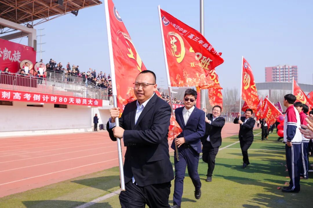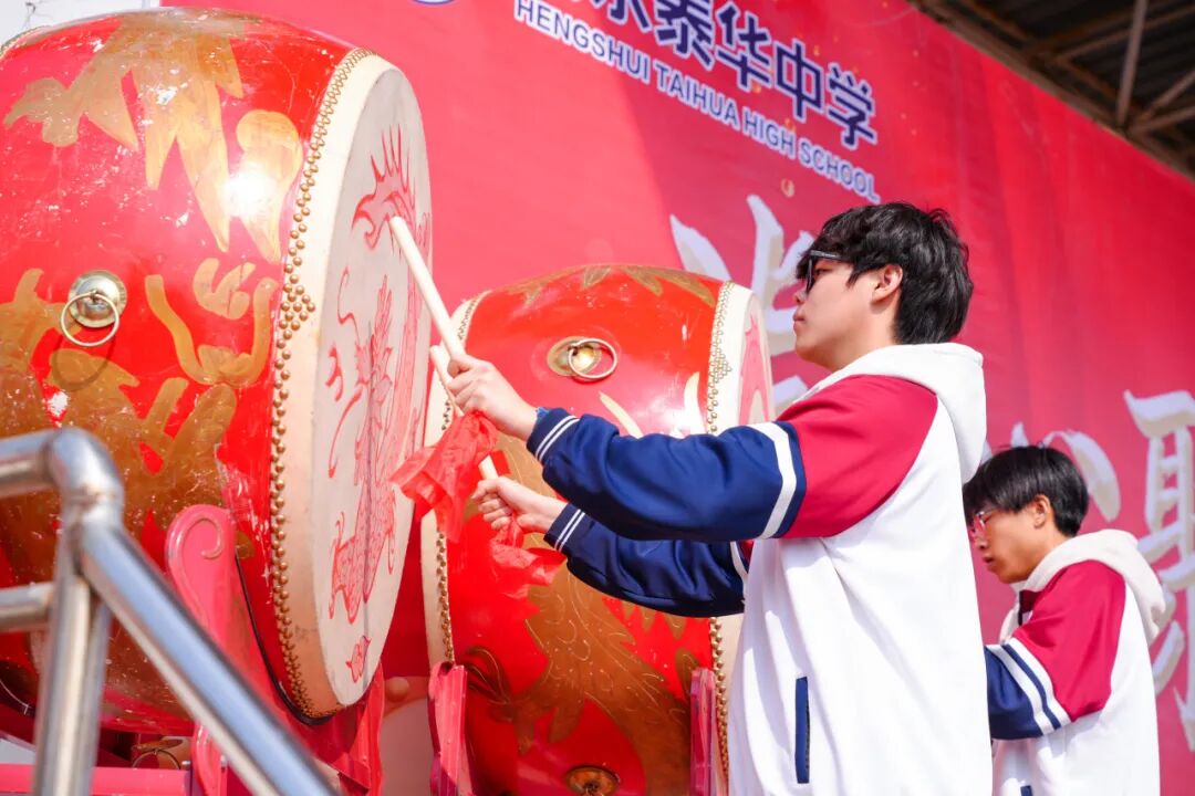 紧接着,四位年级主任依次登台动员,鼓声起落间,他们的每一句话都如重锤般敲在心上——“驷马难追,言出必行!80天,我们要用行动证明,泰华学子,无坚不摧!”
