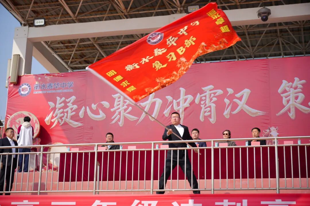 古有战场帅旗指方向,今日泰华战旗定乾坤!战鼓声声,催人奋进,在激情澎湃的氛围中,衡水泰华中学26届高考备考主帅巩建英校长为学校毕业年级授旗。高三年级A部主任郭庆炉、高三年级B部主任张明明、复习A部主任王丽昌、复习B部主任孟安,四位年级主任依次接过年级大旗,奋力挥舞,那一刻,旗帜迎风猎猎作响,仿佛千军万马蓄势待发!