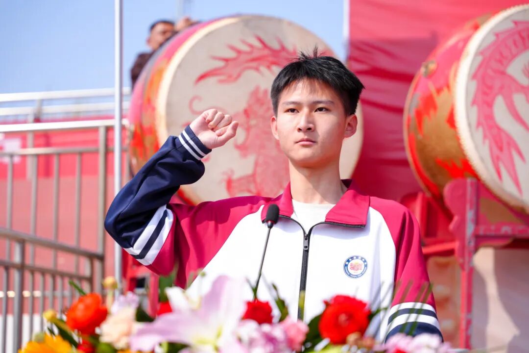 学生代表2512班剧涵锋同学带领全体战友庄严宣誓。数千名学子高举右拳,声音汇成雷霆之势:“不负父母期盼,不负恩师厚望!不负青春理想,不负泰华荣光!80天,我们必定全力以赴!26高考,我们必定马到成功!”