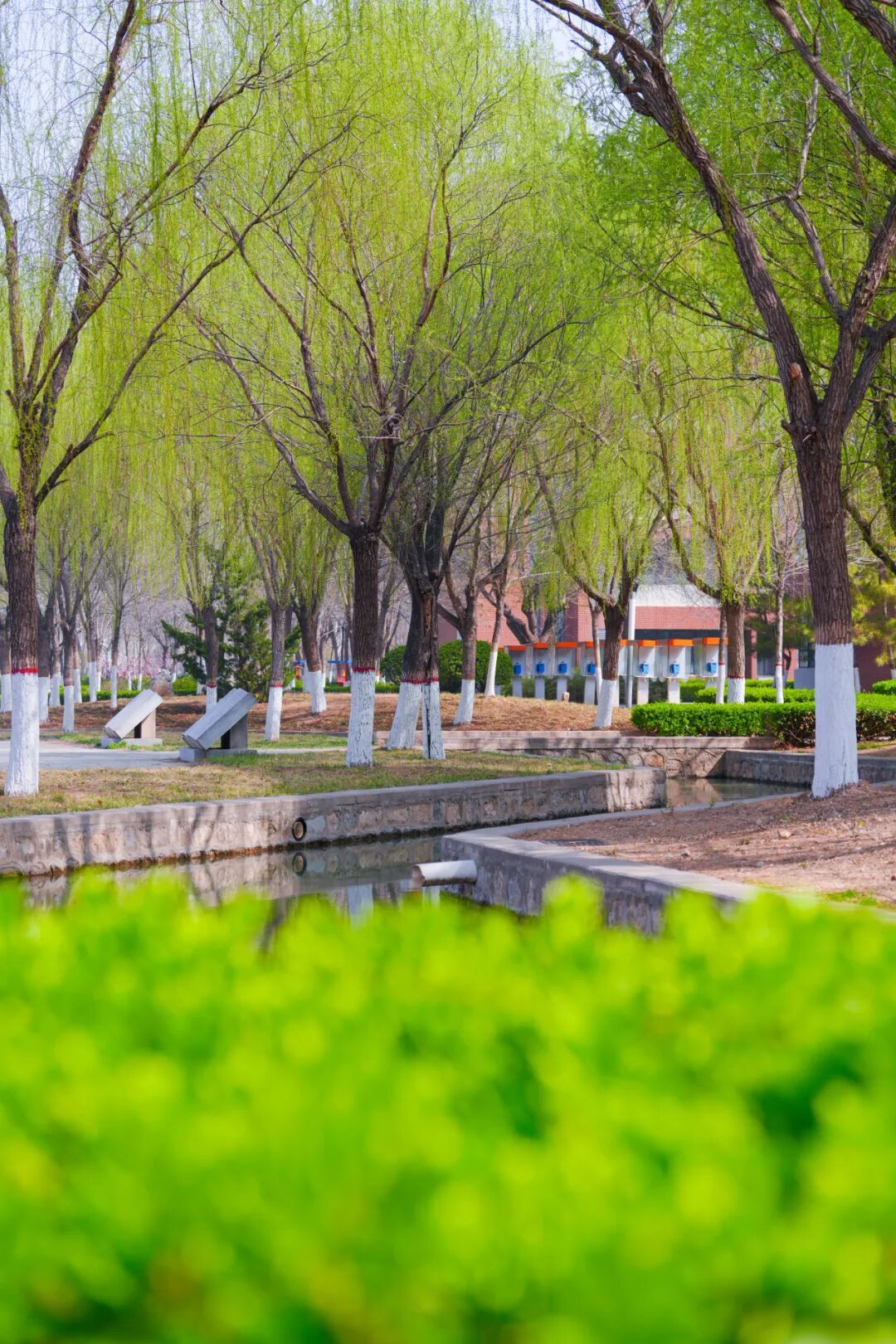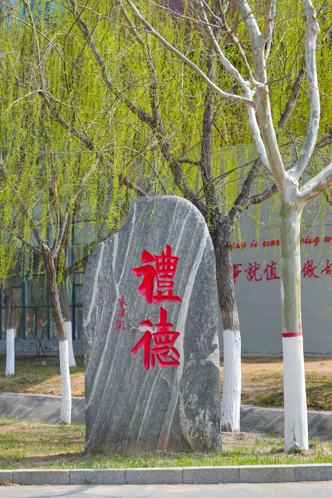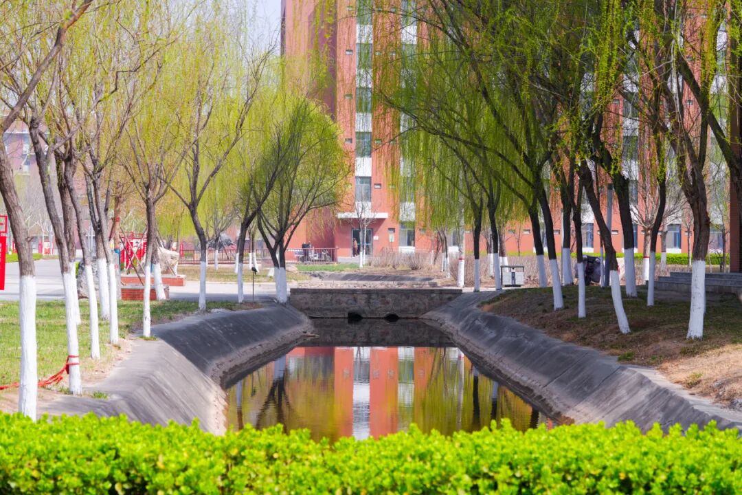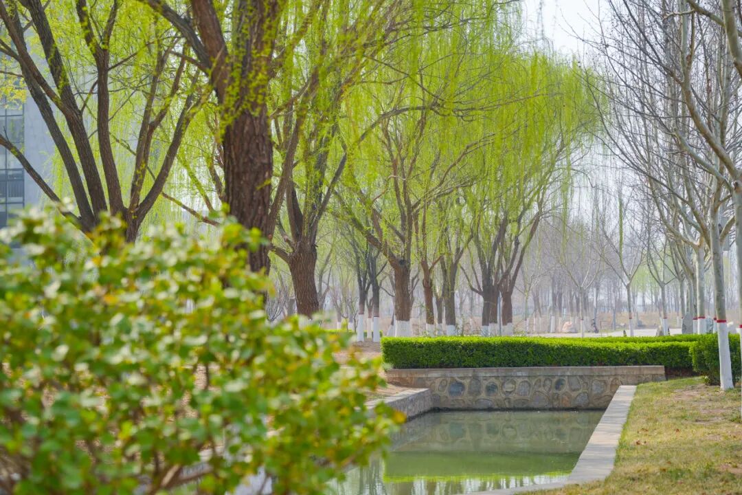 新绿的杨柳、绽放的花儿、春水初涨的池塘、活泼的喷泉,还有充满文化底蕴的雕塑和文化石……美丽的校园,天然的氧吧,自然的能量场,在这么美的校园里学习,简直是双倍的快乐。