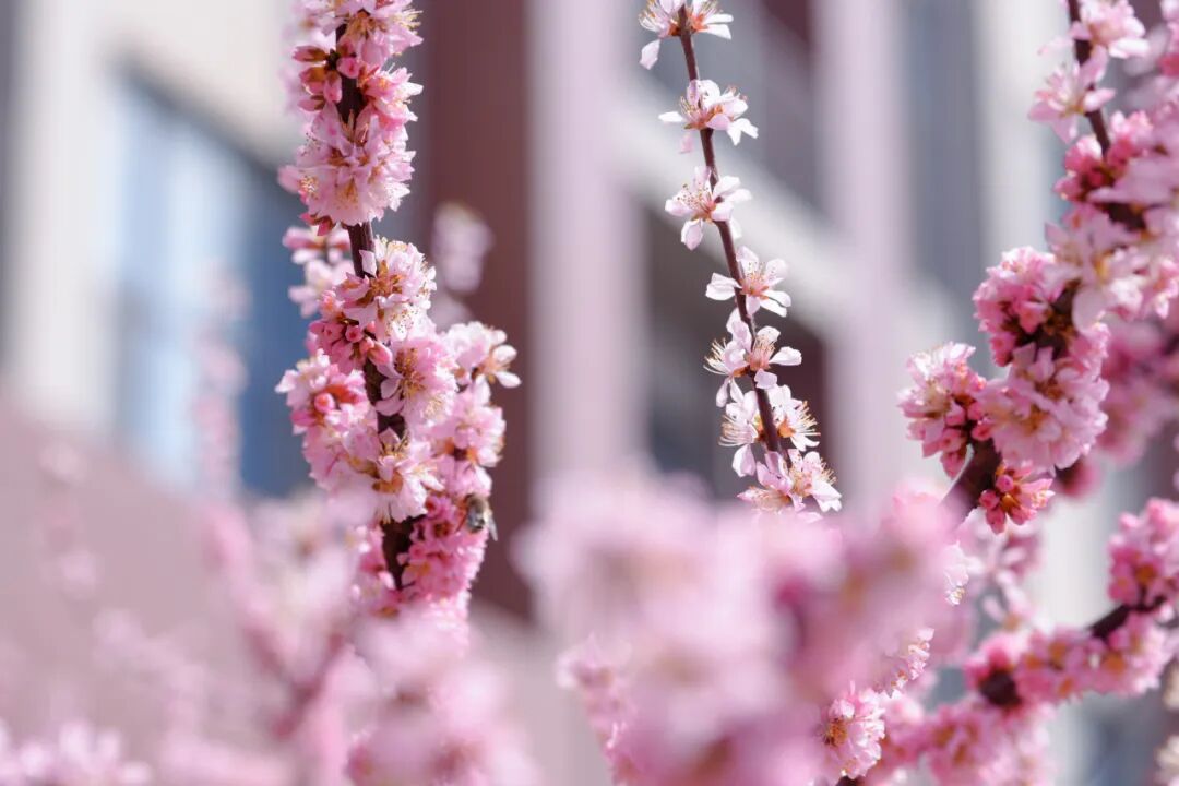 树儿忙着抽新芽,花儿赶趟儿似的全开了,连风都变得软乎乎、甜丝丝的,走在校园里,像是闯进了一部青春治愈片,随手一截都是美好。