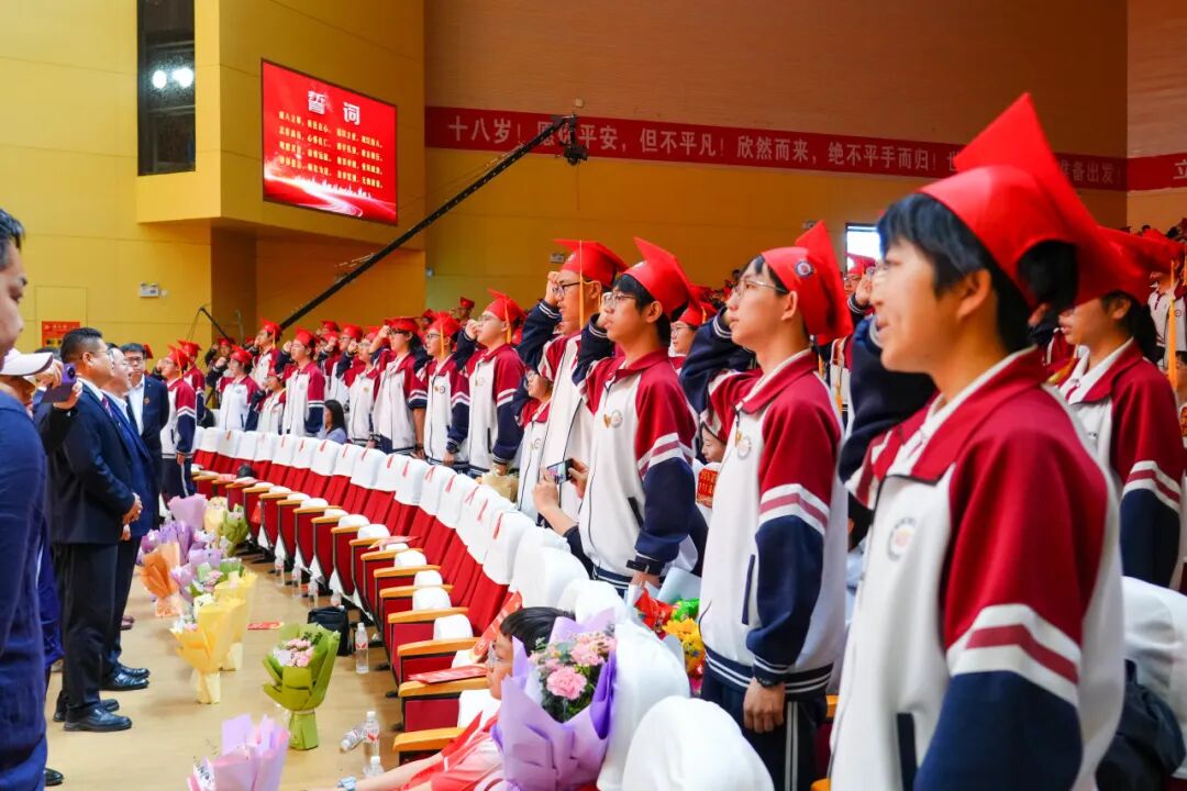 “我立志成为有理想、有道德、有文化、有纪律的合格公民……”全体学子高举右拳,庄严宣誓,誓言铿锵有力,响彻全场,彰显新时代青年忠诚担当、奋发有为的坚定信念。在激昂的《歌唱祖国》歌声中,成人礼仪式圆满落下帷幕。