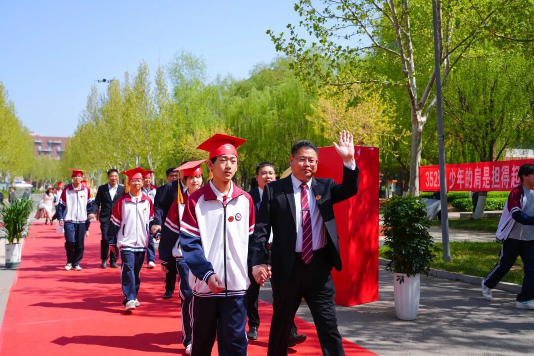 衡水泰华中学校长巩建英,副校长王伟、孙永峰、郭庆炉、张宪辉,高二年级主任程立朋、杨玉志与高二年级全体师生、家长共同到场,多位重磅嘉宾莅临现场,用一场庄严、温暖、厚重、难忘的仪式,见证少年成长为青年,见证青春迈向新程。