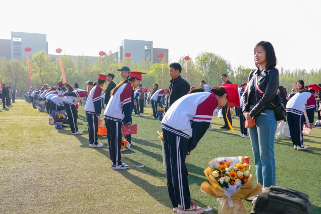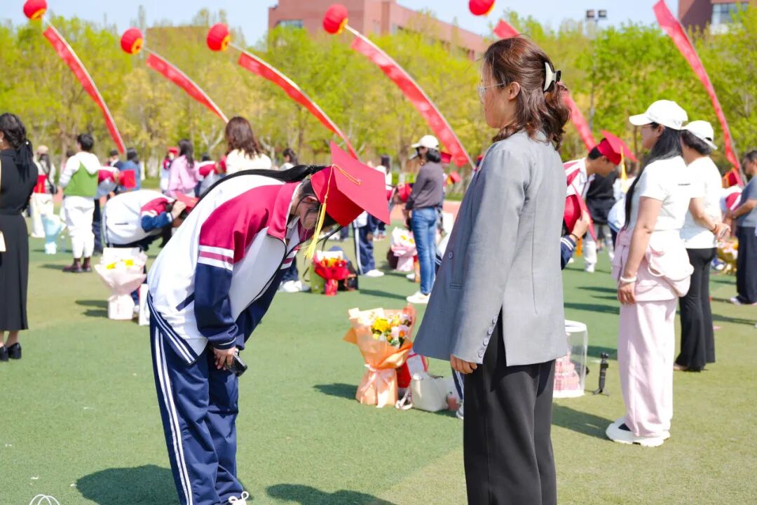 传统冠礼仪式庄重而温情,成为全场最动人的篇章。父母为孩子亲手戴上成人帽,这一顶帽子,戴下的是牵挂,是祝福,更是一份从少年到青年的郑重宣告。孩子们面向养育自己十八载的父母三鞠躬,一谢养育之恩,二谢陪伴之情,三谢引领之德。每一次鞠躬,都饱含着对父母的感激;每一个眼神,都写满了成长的坚定。