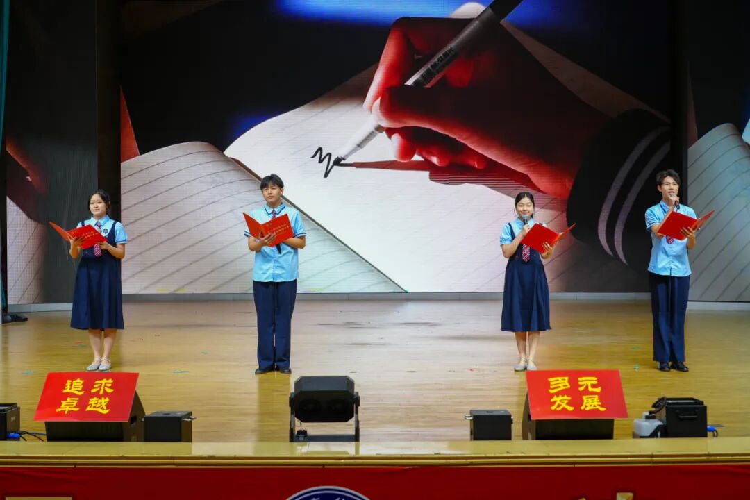 紧接着,学生代表带来诗朗诵《十八岁畅想》,声音铿锵、情感饱满,展现出泰华学子朝气蓬勃、意气风发的青春模样。