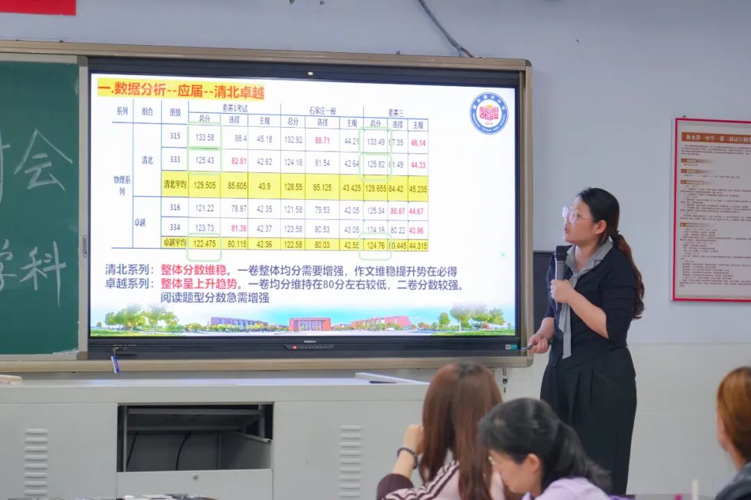 全体高三任课教师参会,我校校长巩建英,副校长王伟、郭庆炉、李桂省、王丽昌等校领导出席会议并作指导,为高三最后阶段的冲刺备考指明方向、注入动力。