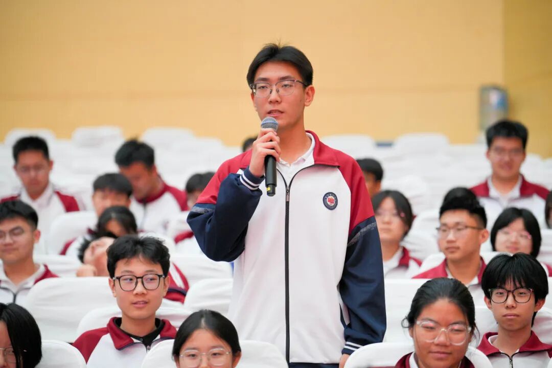 互动交流环节,同学们踊跃提问、真诚求教。王自焰教授寄语泰华学子:未来战争是智能化、无人化、高精尖武器的较量,青年一代要把个人理想融入国家发展,文理皆可报国,青春皆有可为;更要以永不言败的态度、狭路相逢勇者胜的精神、滴水穿石的毅力,攻克学习与人生的每一道难关,成长为祖国最需要的栋梁之才。